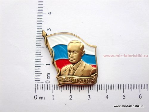 ФРАЧНИК БОЛЬШОЙ В.В. ПУТИН изготовлен из тяжёлого металла. Владимир Владимирович Путин — президент страны с самой обширной территорией — Российская Федерация. Путин является кавалером множества наград и премий. Награда выполнена в виде развивающегося флага России, на фоне которого помещено рельефное изображение президента из золотистого металла. Нижняя часть знака украшена лентой с надписью «В.В. ПУТИН».